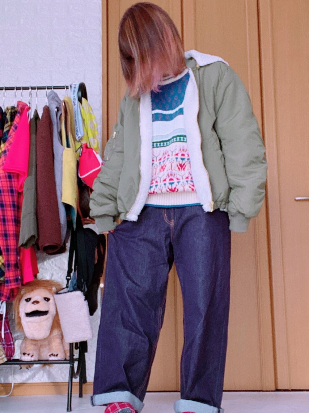 * このニットの胸元のフリル可愛くてすきだぁ(๑⃙⃘ˊ꒳ˋ๑⃙⃘) ネットで購入したけどいいお買い物だった♬.*゚