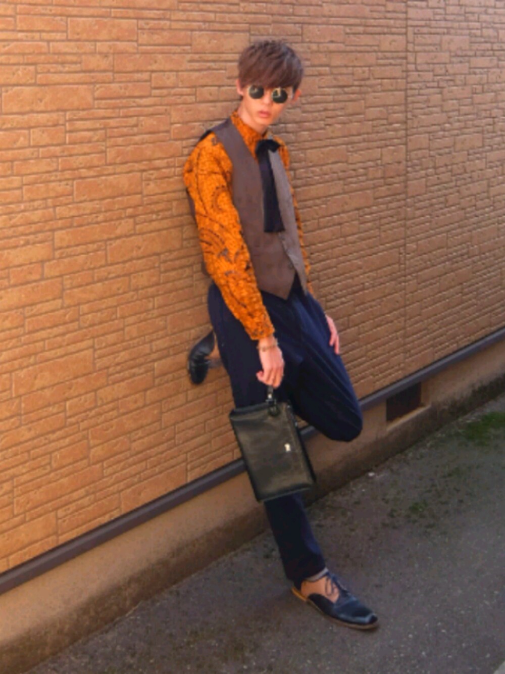 ダルトーンにオレンジ柄シャツでアクセントを入れました。