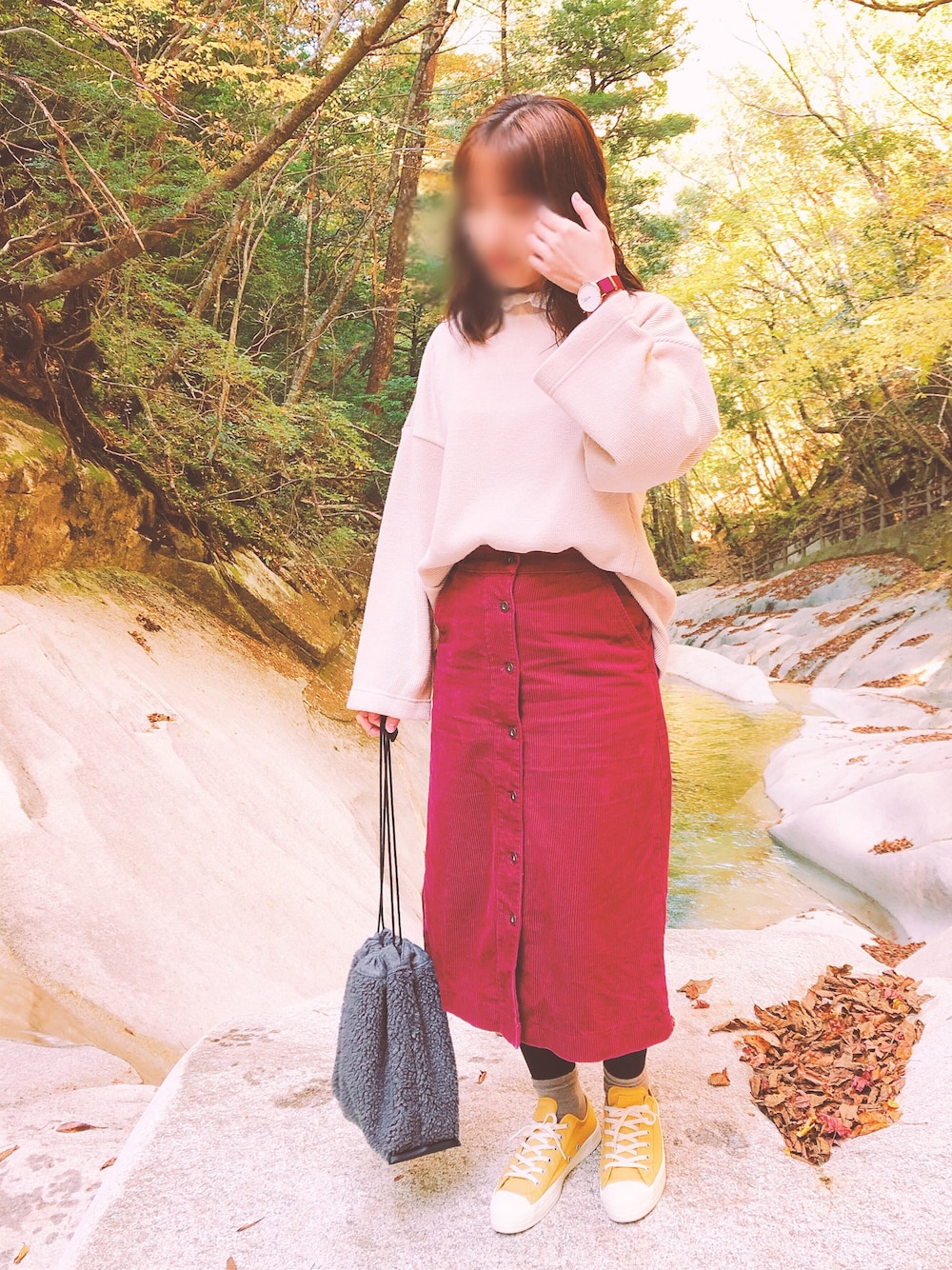 自然の中でパシャり。 新しく買ったものを合わせたくて。 ファーの小物は初めて買ったけど、冬感が出るしとても可愛い☺️💕