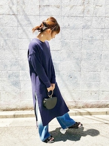 スキッパーシャツにシンプルなパンツを合わせて、オフィスにも馴染むきちんとコーデに。ボリュームシャツは着るだけでこなれ感の出るシルエットがお気に入り。