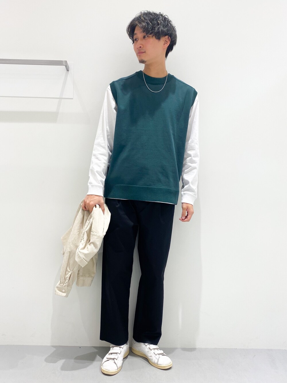 Taku(LAKOLE イオンモール高の原)のベスト「MVSステッチニットベスト / LAKOLE」を使ったコーディネート