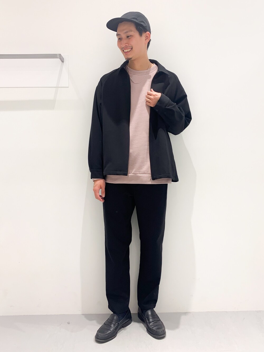 セットアップ風コーデ☕︎ ブラックでキレイめ素材のジャケットとパンツを ピンクのスウェットで差して 大人のモノトーンスタイルに🕴🏻 くすんだピンクなので合わせやすくて 使い勝手もこれからの季節増えてきます! Instagram☞@taku__code
