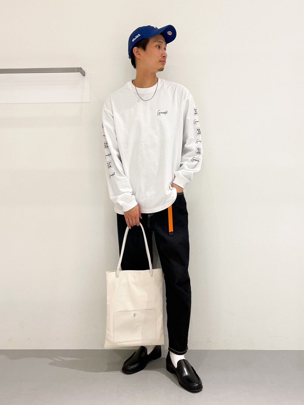 Taku(LAKOLE イオンモール高の原)のTシャツ/カットソー「袖プリントロングスリーブTシャツ / 262326」を使ったコーディネート