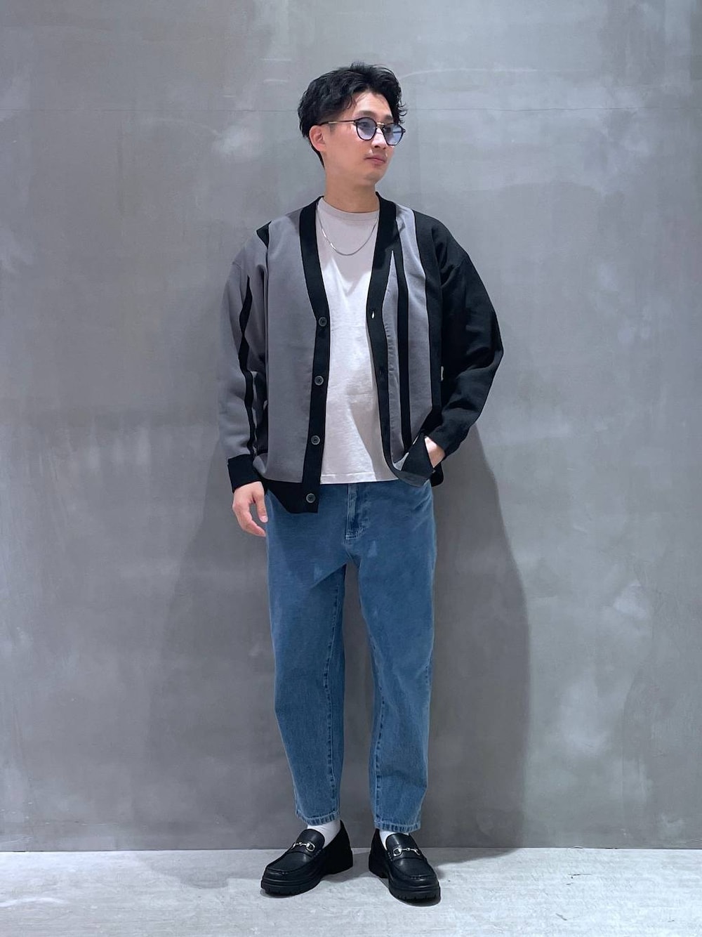 ご覧頂きありがとうございます☺︎ スワイプすると別角度の画像もご覧になれます。 カジュアルコーデ☕︎ ウエストゴムタイプのデニムで イージー仕様になってるので誰でもオススメ◎ バックプリントがインパクトのある Tシャツと合わせせてカーディガンを脱いでも 格好良さをキープしてくれます! 【着用感】(180㎝/63kg/27㎝) ▪︎カーディガン(Lサイズ)…ゆったり ▪︎インナー(Lサイズ)…ゆったり ▪︎パンツ(Lサイズ)…ゆったり ▪︎シューズ(Lサイズ)…ジャスト ぜひ参考にしてみて下さい☺