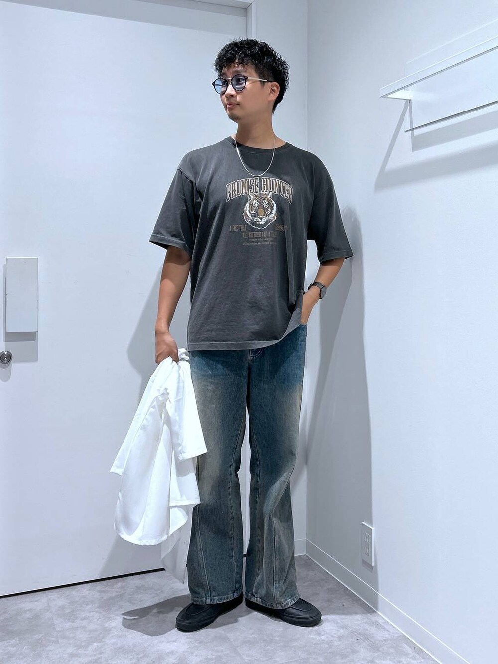 Taku(LAKOLE イオンモール茨木)のデニムパンツ「ツイストデザインデニムパンツ/143975」を使ったコーディネート