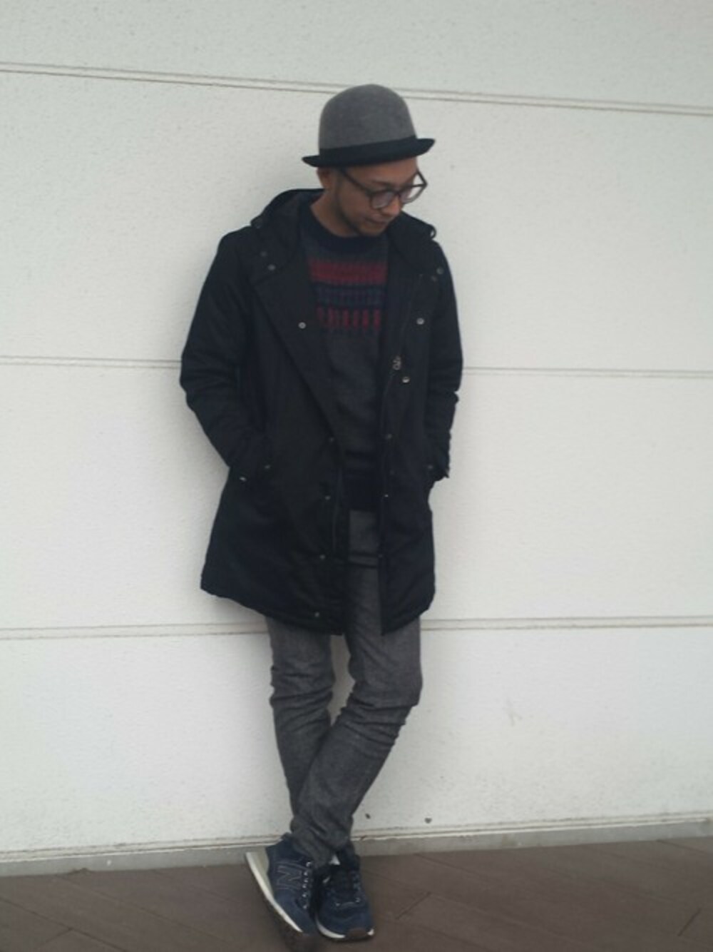 ツイードパンツ×ダウンモッズ×球心柄ニット=かっこ良し!!(笑)