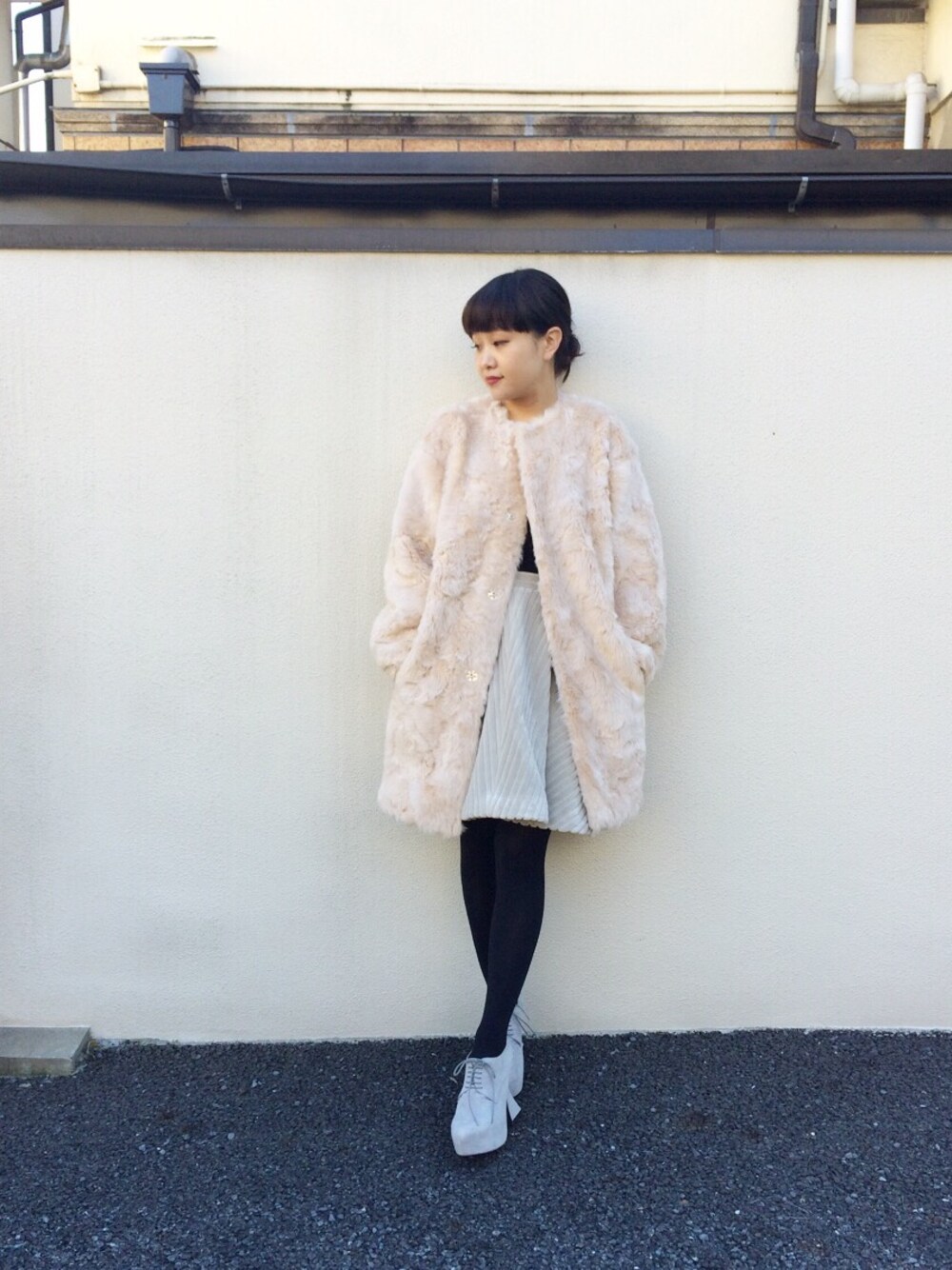 Nao Shinmuraのジャケット/アウター「FAUX FUR COLLARLESS COAT」を使ったコーディネート