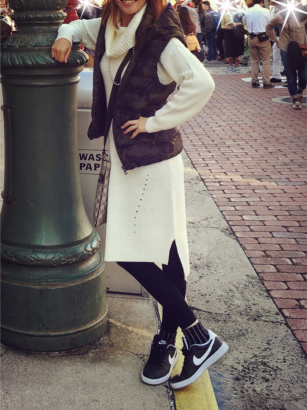 naoのワンピース「【12/1ヒルナンデスご紹介商品】畦オフタートルニット/ワンピース-2015AW-」を使ったコーディネート