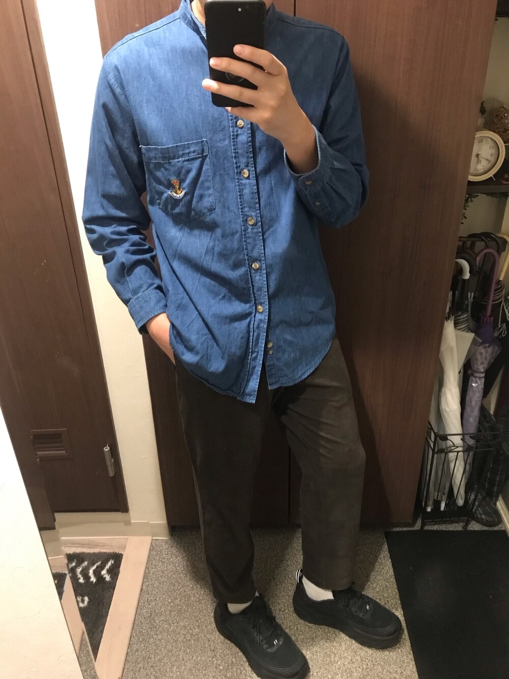 👑デニムシャツ ✖︎ コーデュロイパンツ👑 コーデュロイのパンツで一気に秋の雰囲気が増しますね(^.^) コーデュロイパンツはUNIQLOのアンクルパンツで、ジャージー素材なので楽チンです😲 ぜひいいね😊お待ちしてまーす!
