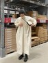 naoのワンピース「《 2022 SS 》golden puff ops / ネックラインシャーリングボリュームロングワンピース」を使ったコーディネート