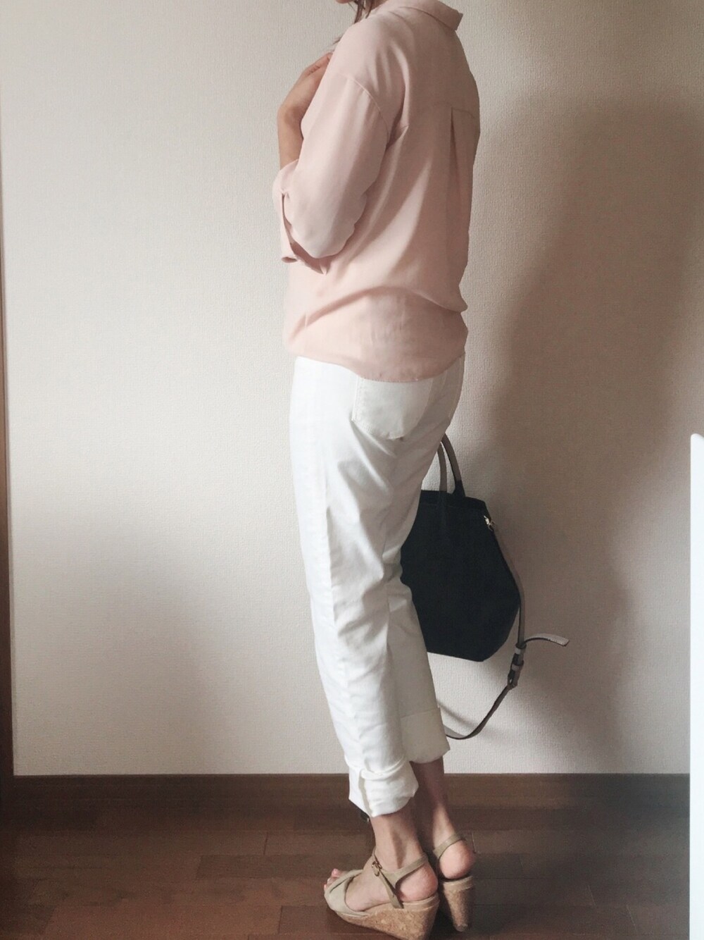 ブラウスは母方の伯母の、パンツは父方の叔母のお下がり。 親戚中の美意識が高い! テロテロ感のブラウスは体のシルエットも出るのでだらしなくならないよう上品に着たいです。 いつもペタンコ靴と楽チンカバンが多いけどヒールとケイトスペード のバッグですこしきちんとしました。