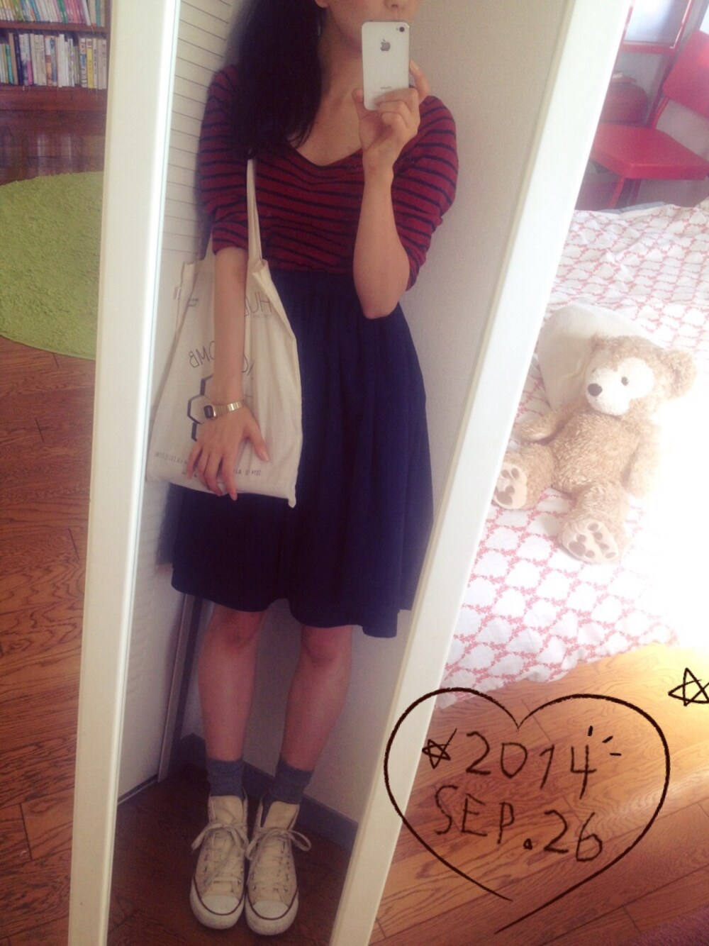ボルドーとネイビーで秋色意識♡ バビロンストックで買ったスカートは リバーシブルになってて チュールスカートと張りのあるコットンスカートと 一人二役してくれのー! 超便利です。 わかりづらいですが今日はチュール側で使ってます。 時間がなかったんで 着画にしたんですがどうですかね… ダッフィーさんに キュート要素を底上げして頂きました