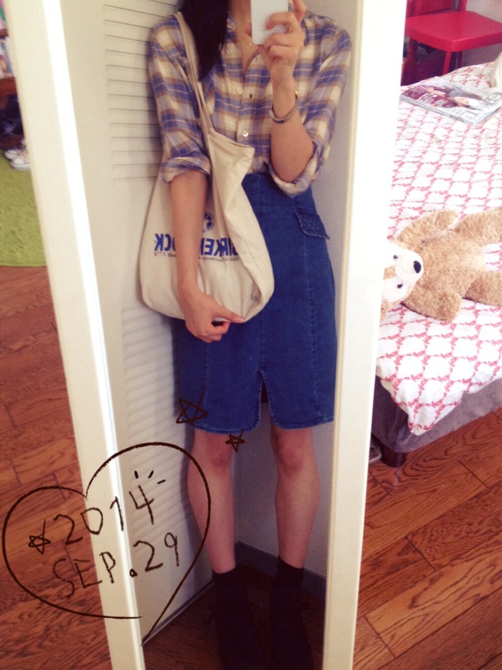 らくちんバイトコーデ さいきん靴下がすき♡ 寒くなるとタイツ履かなきゃいけなくなるから いまのうちに生脚&靴下を満喫しとく タイトスカートだときちんと感が 出てくれていいよね ていうかクローゼットがチェックシャツだらけだぜ ちょっと控えよう… 好きなんだもん…