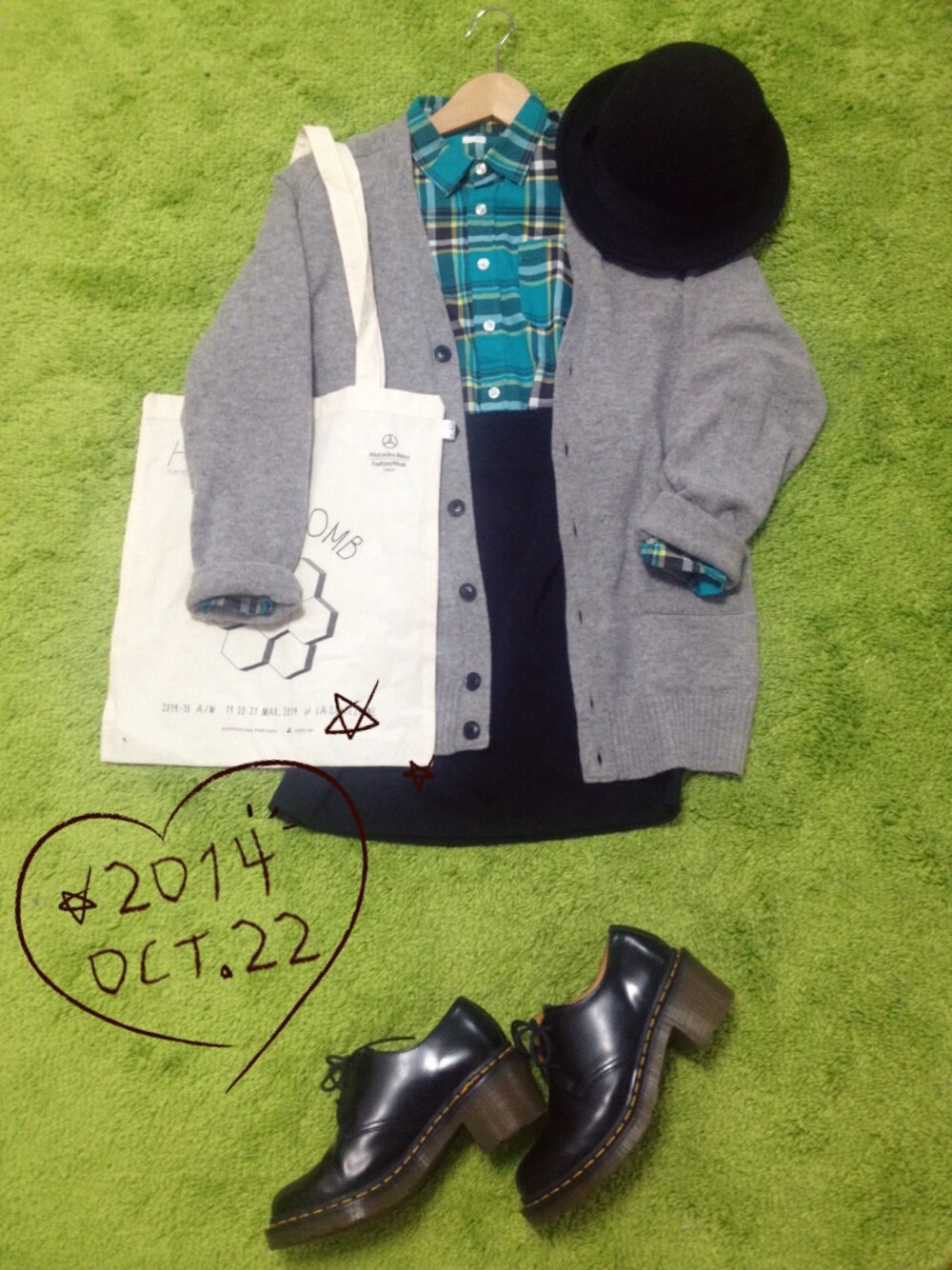 今日さむい…コーデw 大きめトップスのときは ミニ丈ボトムがお似合いね( ^ω^ ) ボーラーハットで ちょっとメンズライク♡