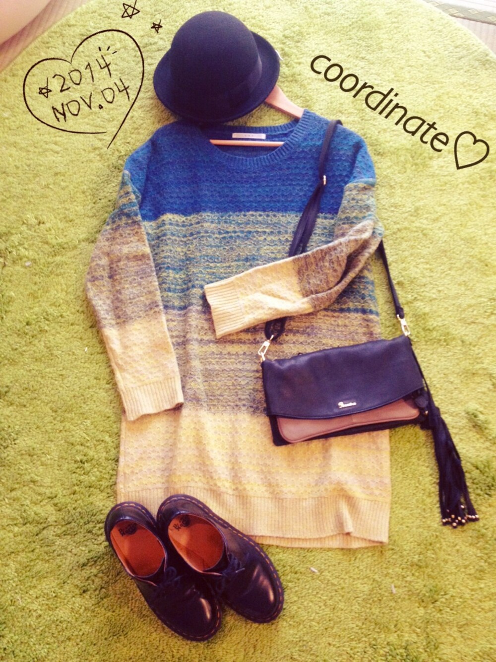 ニットワンピ♡ 去年KBFで買ったお気に入りのやーつ! ちょっとルーズめなので 他を引き締めて着ます。 ていうかわたしの黒小物率がやばいw 帽子バッグ靴がほぼほぼ黒ww