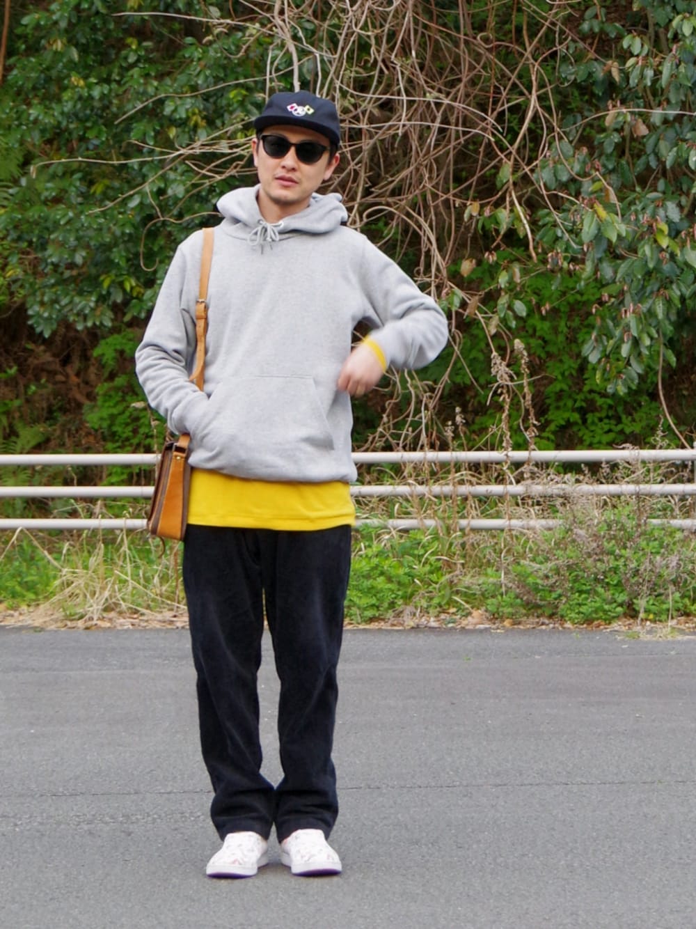 ZOZOパーカー★★★ 特にサイドリブと生地感がお気に入り💯 ポイントは黄色のインナー🍌