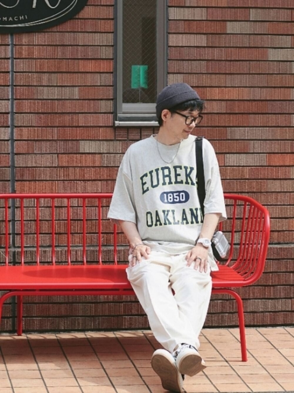 着用コーデ:45件naokのTシャツ/カットソー「WEGO/ヘビーウェイトカレッジロゴビッグシルエット5分袖Tシャツ」を使ったコーディネート