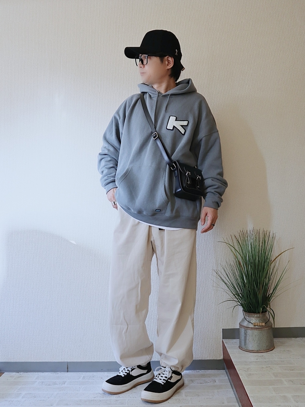 naokのパーカー「WEB限定 KAVU×FREAK'S STORE/カブー 別注 ヘビーオンス ビッグシルエット ワンポイントロゴ プルオーバーパーカー/フーディー/サガラ刺繍」を使ったコーディネート