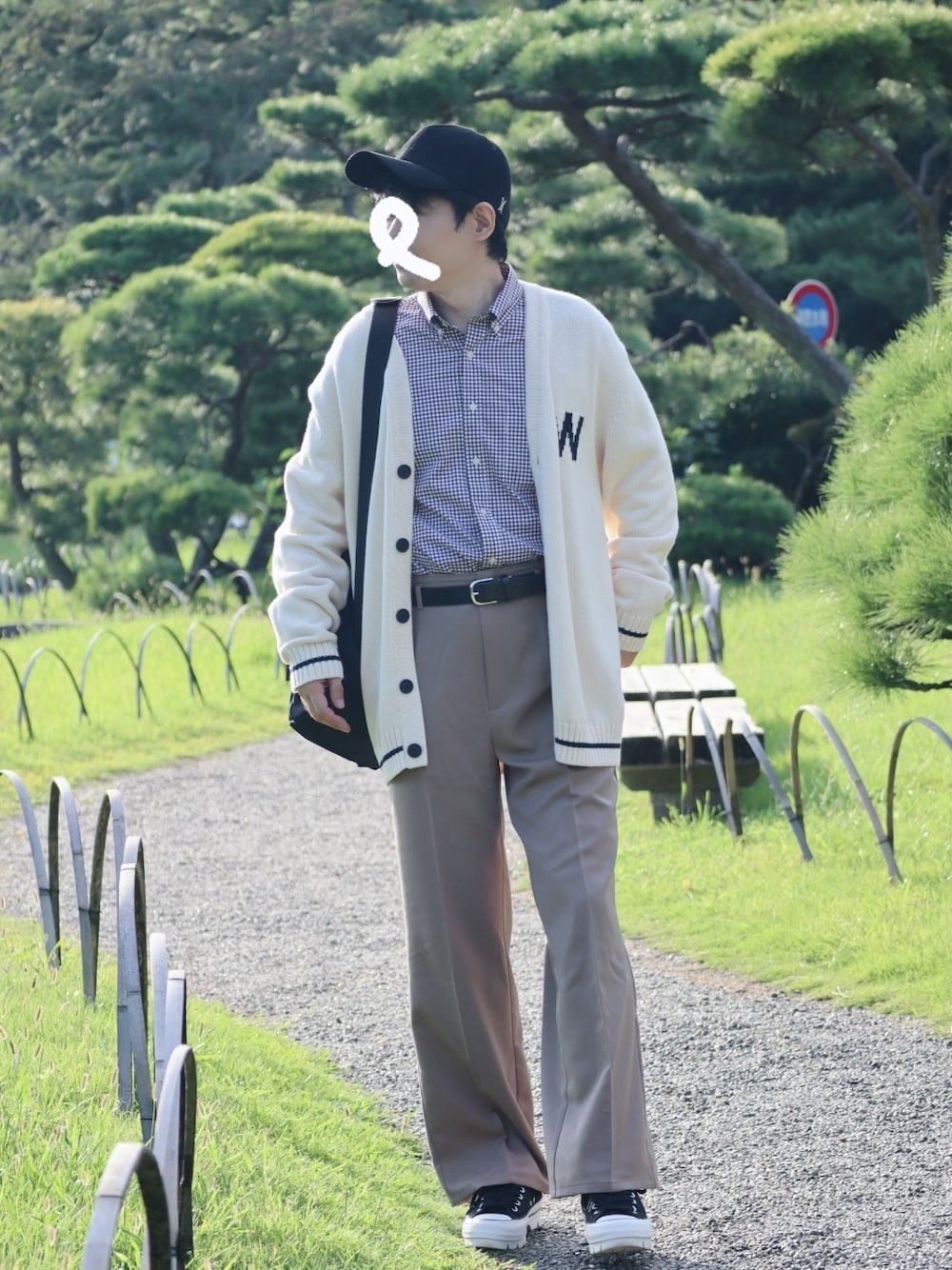 ロゴカーディガンのコーデ