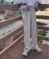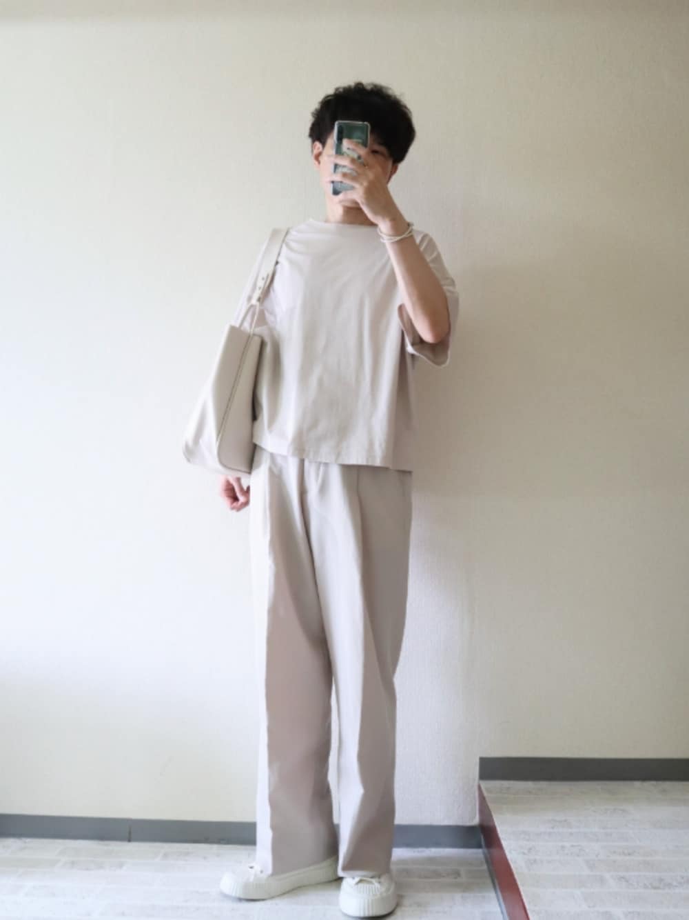 ベージュ淡色コーデ。