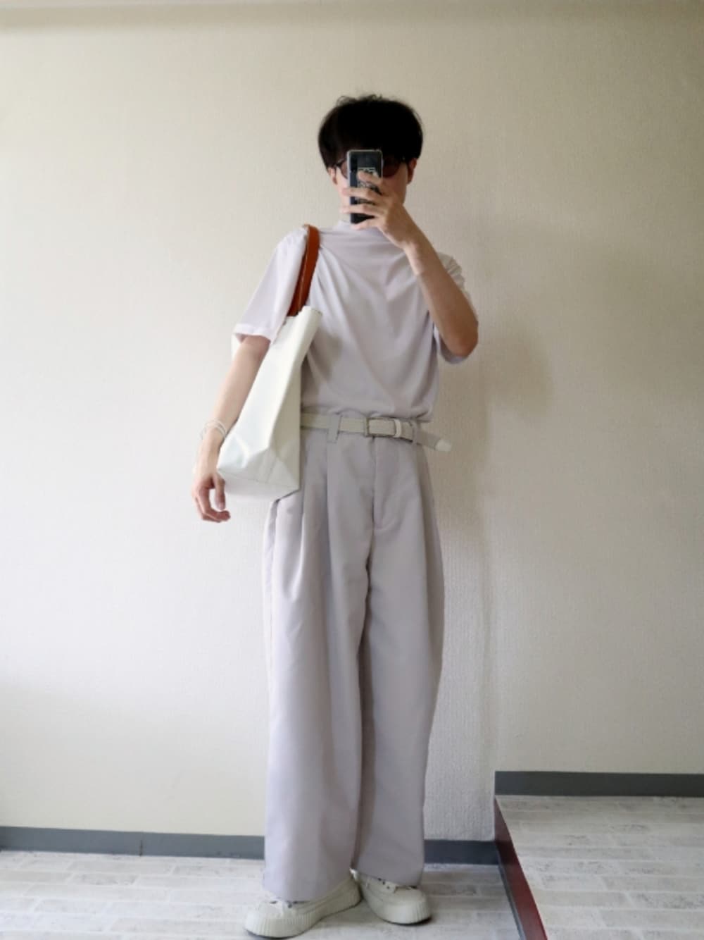 ライトグレーのコーデ。