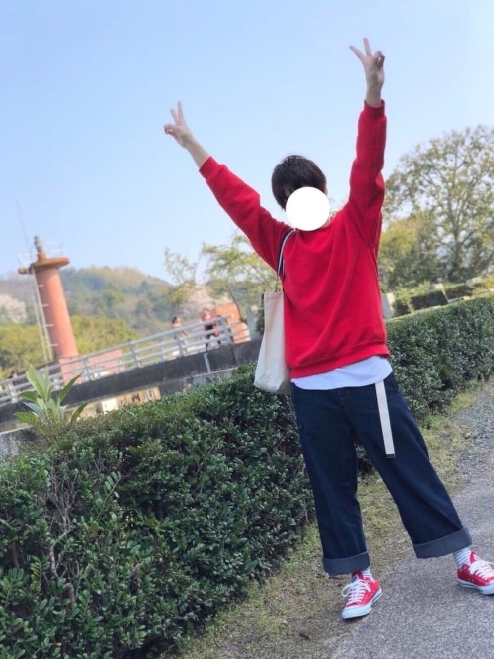 テーマはいちご狩り!!🍓🍓🍓 前回、前々回とキレイめで重たいコーデが続いたので今回はカジュアルなゆるゆるコーデになります✌️☺️✌️ 先日友達といちご狩りに行った際のコーデなんですが、肝心のいちご狩りは既に予約がいっぱいで結局出来ませんでした😢 それでも散策したり、お花見したり、写真を撮りまくったりですごく楽しい1日でした!!(この写真にいちご狩り感どころかお花見感もないですが...w) さて、少しだけコーデのポイントを! ビッグシルエットのスウェット×ワイドデニムパンツでゆる〜く いちご狩りがテーマなので、見ての通り赤色を基調とし、デニムパンツで春の季節感を取り入れ シンプルなコーデなので、レイヤードスタイル、ロールアップしてソックス見せ、ガチャベルトで少しアクセントを加えています このコーデはカジュアルすぎて子供っぽいので、ライダースや革靴なんかのキレイめアイテムで引き締めてあげるのが良さそうですね👍(いちご狩り感は薄れますが...) 友達にめちゃくちゃ写真を撮ってもらい、載せたいものが多かったので小窓のほうにちょこっとだけ写真を貼りました(完全に自己満足ですw) ちなみにプロフィールの画像と背景も変えてみました✨ 最後に、いつもいいね、お気に入り、コメントを下さっている方々ありがとうございます!!