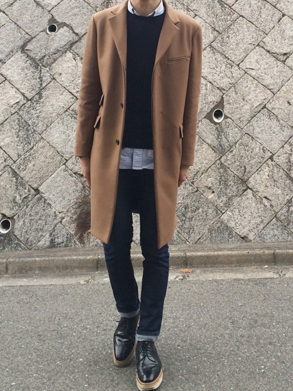 naokiのチェスターコートを使ったコーディネート