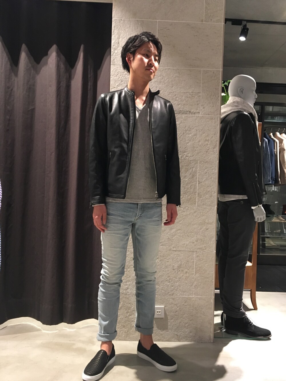 表参道店です。 シープレザーを使ったライダースが再入荷致しました‼︎ デニムもストレッチが効いてて凄い履きやすいタイプになっています。