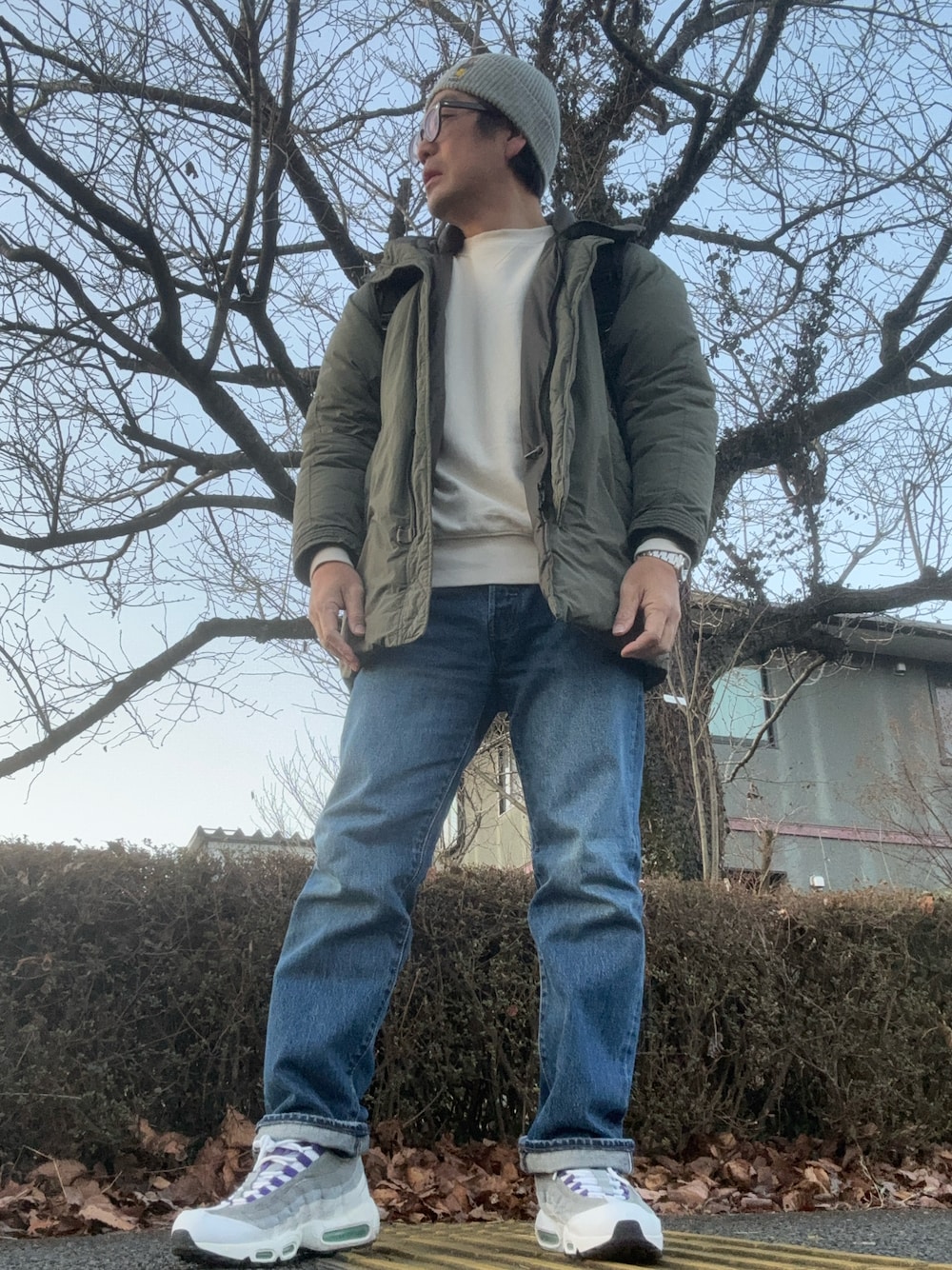 🧢…polo by Ralph Lauren 👓…タートオプティカルアーネル 🧥…小松マテーレ 👕…good wear 👖…Levi'spremium 501 👟…NIKE AIR MAX95 ⌚️…Rolex Explorer I