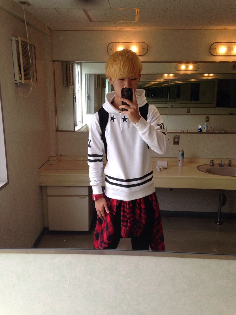 暖かくなってきたのでパーカー1枚でのコーデです 体育祭に向けて金髪にしました(笑)
