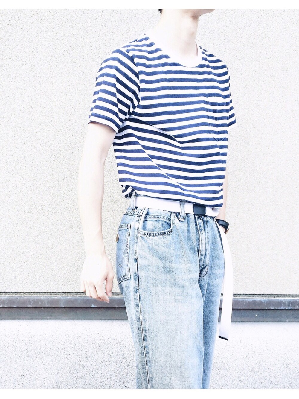 ワイドデニムパンツとボーダーTで夏らしくコーディネートしました。 デニムは古着です!
