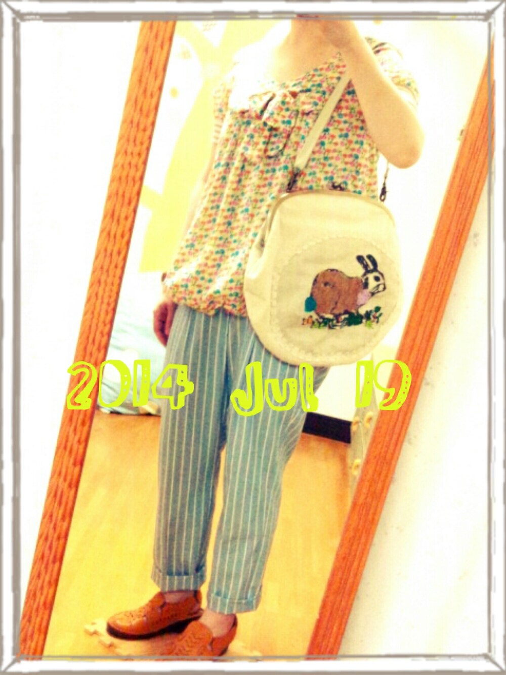 ひさしぶりにtamaoのがま口バッグ♩ 取り外しできるチェーンを、別のに替えたら 使いやすくなった! ヾ(。ゝω・。) トップス(FRAPBOIS) バッグ(tamao) パンツ(POU DOU DOU) サンダル(?)