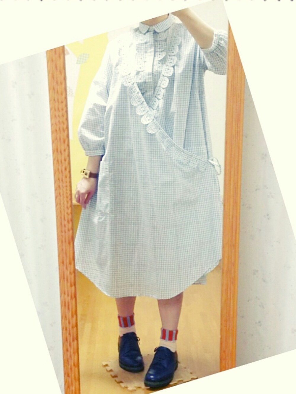 今日は、アウトレットに行ってきました🎵 そこで、運命の出会いが😵💘(笑) かすりチェックCOPのワンピが、お店入った瞬間 わたしの目に飛び込んできた👀✨✨✨ 実は、先月zozousedでシャツをゲットしてたので ムック本に載ってたピピちゃんのコーデが できちゃう!!😲✨と、すぐさま手に取ったのです(笑) で、早速の真似っこコーデ