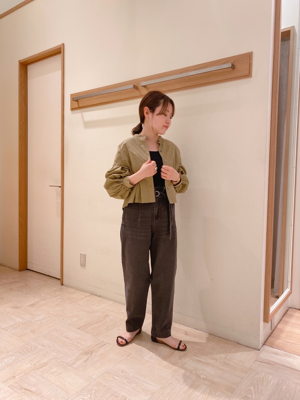 再入荷アイテムのクロップドバンドカラーシャツブルゾンを使ったコーデです💁🏻♀️ 短い丈なのでスタイル良く見せてくれます! ノースリーブの羽織りなんかにも便利ですよ◎ 色展開もカーキ、オフホワイト、ネイビーと使いやすいカラーばかり。これは人気なのが頷けます🙌🏻おすすめです♡