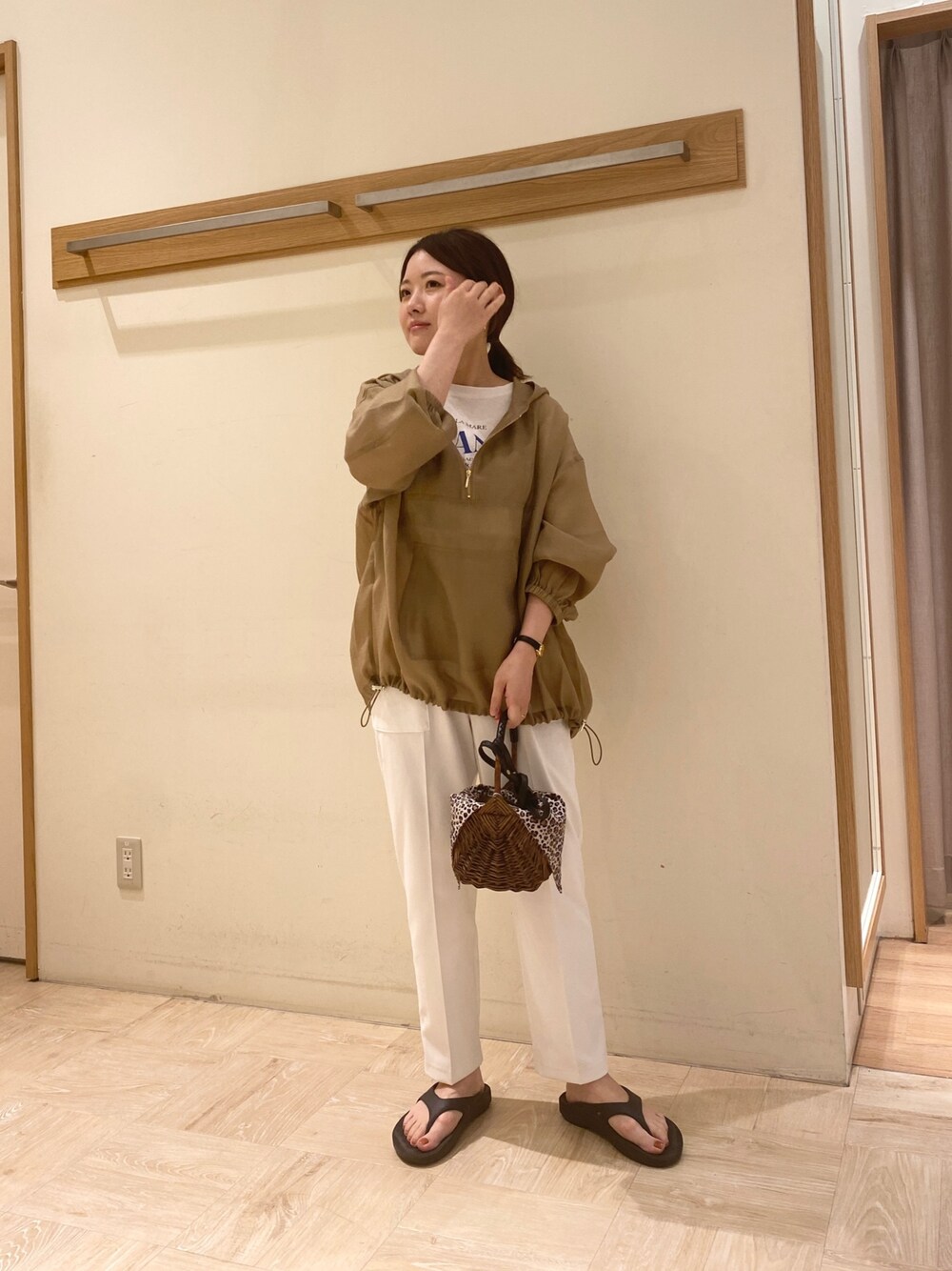 トレンドを詰め込んだシアーアノラックパーカーを使ったコーデです。ファスナーや細かいパーツがゴールドなので、スポーティー✖️キレイめが叶うアイテム♡首元がしっかり開くのでTシャツの重ね着がおすすめです! ドライオックステーパードパンツは、もはやfredy emueの名品と言っても過言ではない履きやすさ🥹白でも透け感がないのが嬉しい!