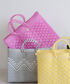 シンプルコーデにネオンピンクのメルカドバッグを差し色に。