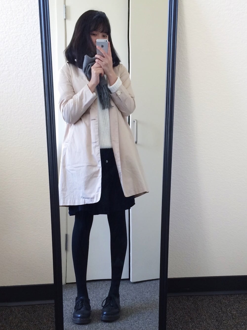 なおmeのマフラー「ウール織りマフラー」を使ったコーディネート
