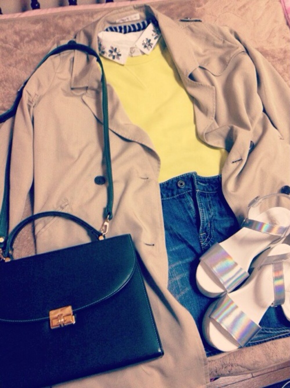 つけ襟♡JEANASiS スカート♡不明 靴♡LOWRYS FARM 鞄♡古着屋 トレンチ♡Right on やっぱり春だし明るく行きたい♡ 早くめんくんに会いたい今日この頃
