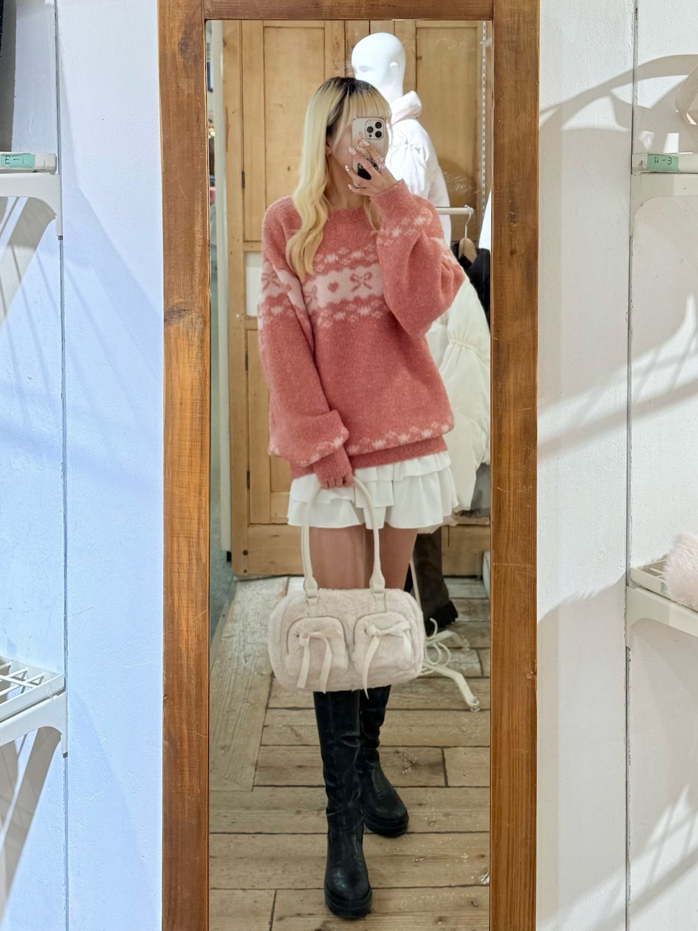 nao(one after another NICE CLAUP)のショルダーバッグ「リボンポケット付きファーボストン」を使ったコーディネート