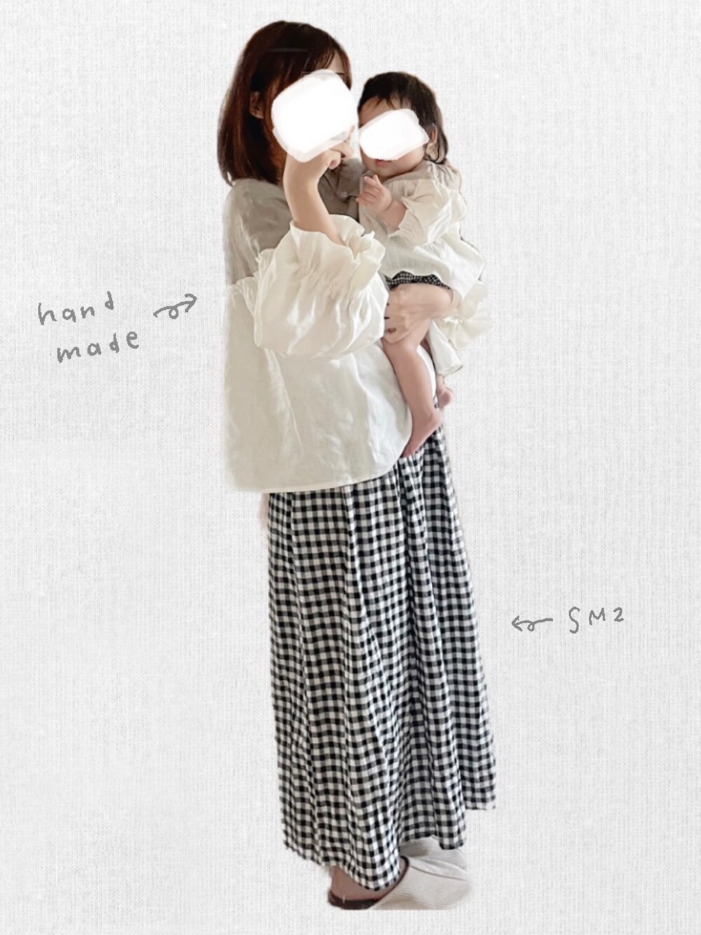 . かわいいベビー服を参考に 作ってみたトップスで おそろいコーデ ꒰ ⁎ᵕᴗᵕ⁎ ꒱ 🤍 夏っぽくギンガムと合わせてみた ◎ .