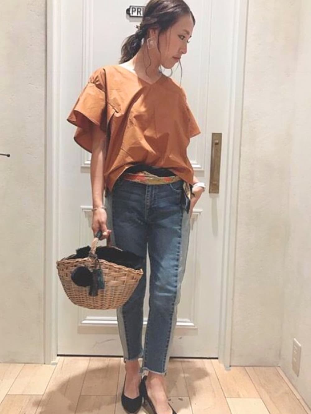 NAOKO.sのシャツ/ブラウス「フリルボリュームスリーブブラウス」を使ったコーディネート