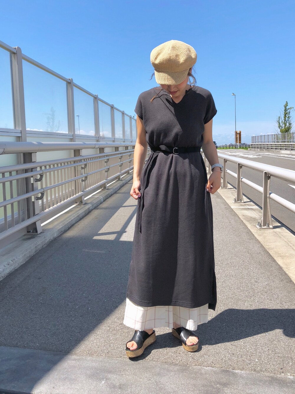 いつかのコーディネート(^^) ワッフルワンピースの新色のチャコールグレーが可愛い♡ 黒よりも暗くならずに着れてカジュアルにも合わせれます! スリットが深めに入ったデザインなのでワイドパンツで合わせても◎