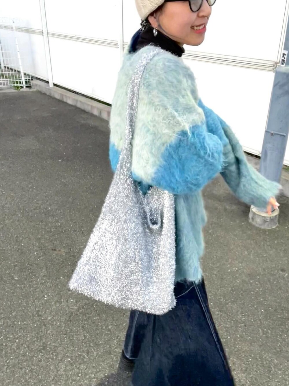 NAOKO.sのトートバッグ「ラメシャギーニットトートバッグ」を使ったコーディネート
