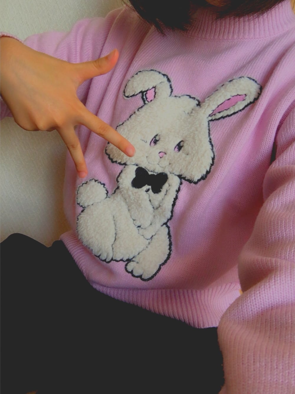 💗🐰めっちゃお気に入りのうさぎニット🐰💗 これから習い事行ってきます🤓🎨🌷💨