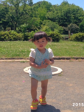 ちょっぴりお腹がぼよん。頭も重そうなrico...おしゃれなお友達をwearで見て参考にして頑張ります♡ あぁーキッズちゃんのコーデ見てるだけで癒される♡