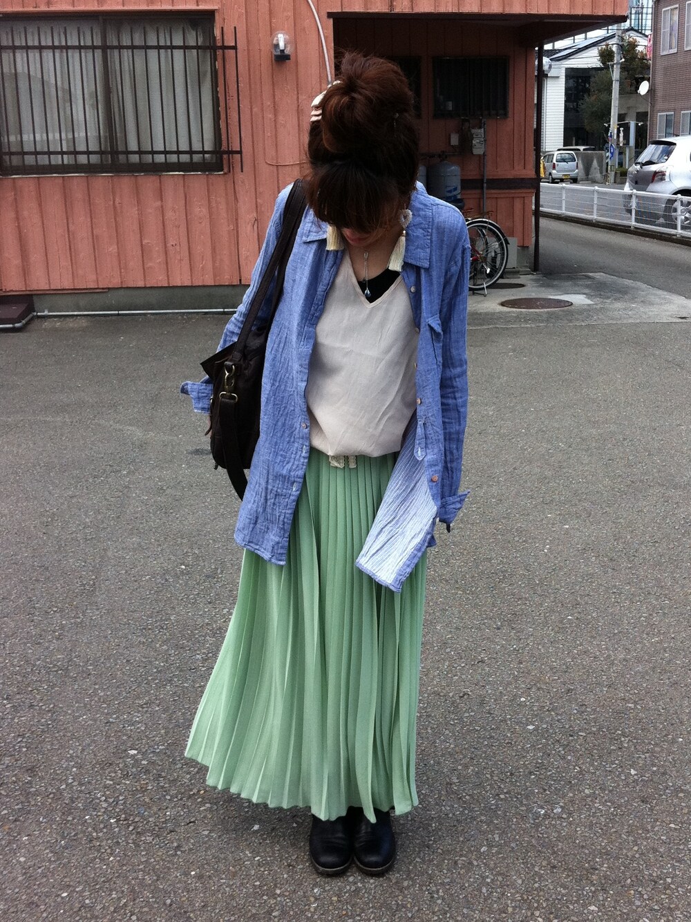 二年前のスタイル(^^) これで、お花見行ったなぁ♪ 今日も靴から鞄まで全部ミスティック♡