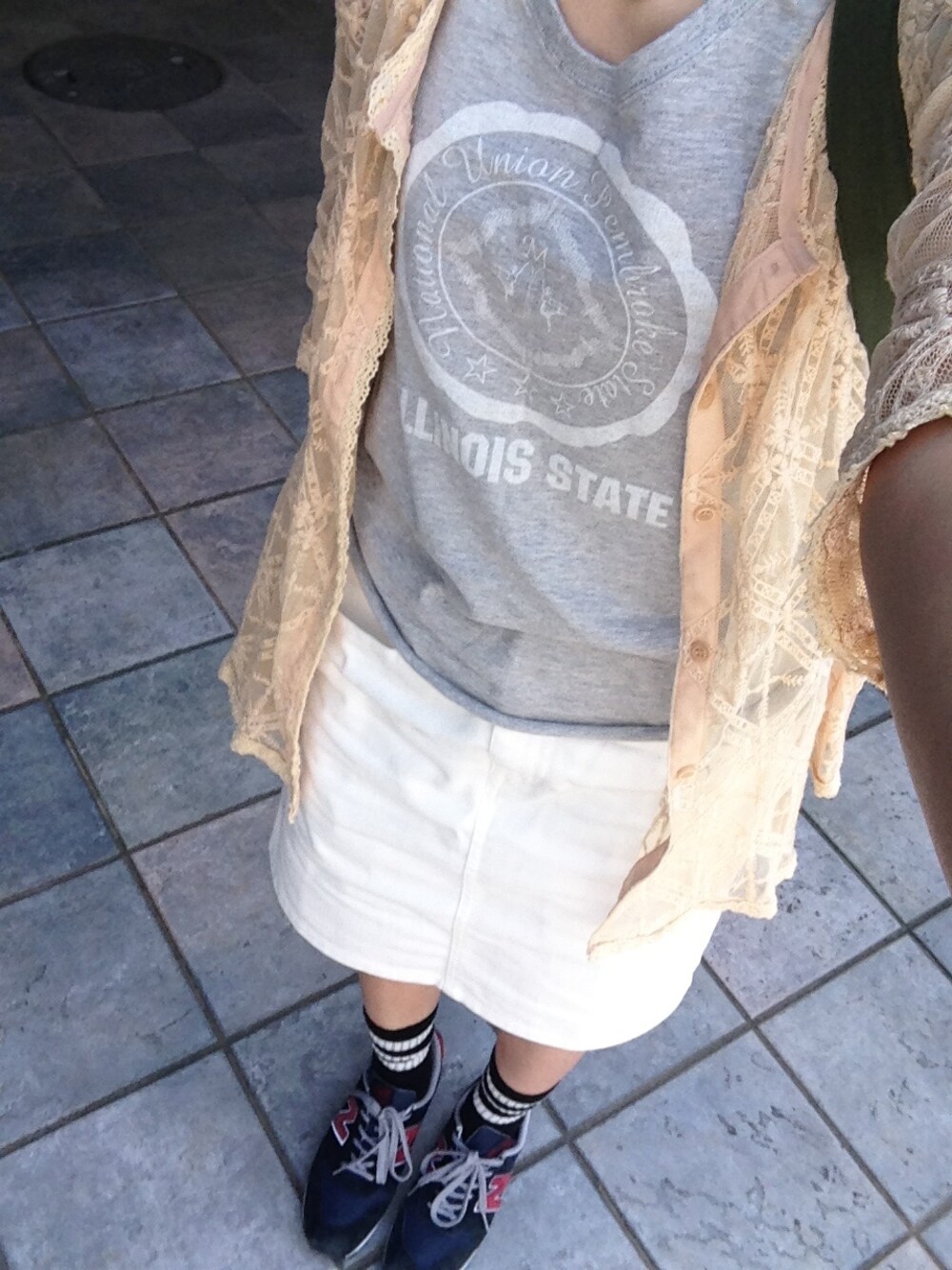 今日はあったかくて、Tシャツとレースガウンでよゆーやったぁ♡♡ ガウンとTシャツはミスティック♡ スカートはカスタネ♪ カモ柄リュックはお気に入り〜♡