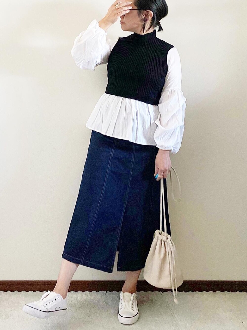 𓃟ﻌﻌﻌ❤︎𓃟ﻌﻌﻌ❤︎ * #ootd * * * tops→ @sakishima_tyo_amp bottom→ @apretro_zozo bag→ @gu_global @grl_official shoes→ @kobe_lettuce * * * @sakishima_tyo_amp ✔ ニットベストツキソデボリュームシャツ/ブラック着用 * レイヤード風ニットベストシャツ♡♡ * 袖のデザインも可愛い~⸜(*˃́ꇴ˂̀*)⸝↑↑↑ * * * @apretro_zozo ✔ ラインキリカエデニムロングスカート【ZOZO限定アイテム】/ブルー着用 * デニムのロングスカート♡♡ * 控えめAラインに、ウエストから裾に入った切り替えデザインがすっきり綺麗シルエットに~(⁎˃ᴗ˂⁎)✧*。 * * * ▼どちらも本日zozoで1000円offクーポン出ていま~す🎟✨ * @apretro_zozo #apretro_zozo #apretro #アプレトロ ______________________________ᵗᑋᵃᐢᵏ ᵞᵒᵘ ¨̮*❥❥❥