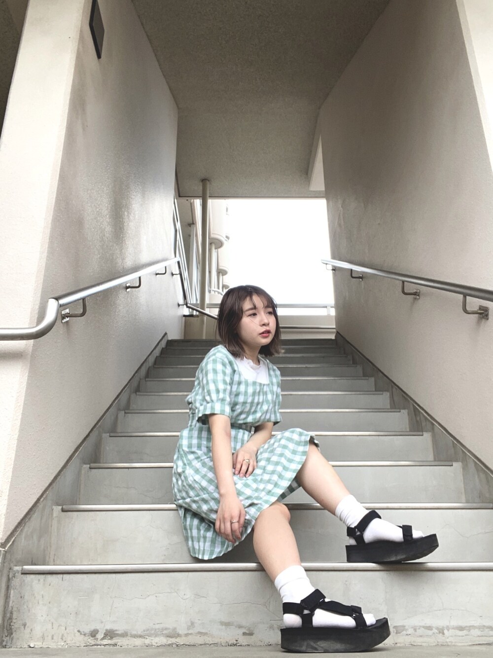 こんにちは!☁️ 女の子っぽい日のコーデです📸 ギンガムチェックかわいすぎる…!ミントグリーンの色味にきゅんてきて購入しました🌱 ダイナーの店員さんみたいなスクエアネックにパフスリーブにタイトスカートに後ろは編み上げになっててもうかわいいでしかない…❤︎ シルバーアクセゴツゴツに付けるのもありですよね🍴 ぶりぶりしすぎてしまうので、足元は夏らしくTevaを合わせて外しました♩ 厚底なので、低身長にはめちゃくちゃありがたい…!サイズ探すの大変ですよね☹️笑笑 今年は白のSHAKA狙ってます…!(昨年も言ってた笑笑)