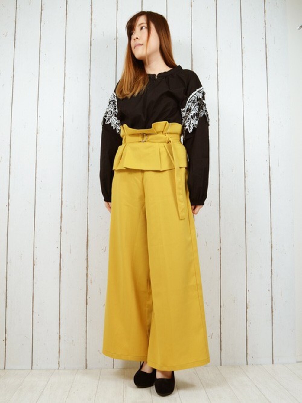 パキっとしたイエロー×ブラックがポイントです♪ てろっとした素材なので柔らかく着心地ラクチン! TOPS▶モチーフレースブラウス \2,797 http://styleblock.jp/item/sb-26854 BOTTOMS▶ウエストタックワイドパンツ \3,229 http://styleblock.jp/item/sb-26830 SHOES▶プラットフォームヒールパンプス \2,700 http://styleblock.jp/item/sb-qqyhda06-009-1